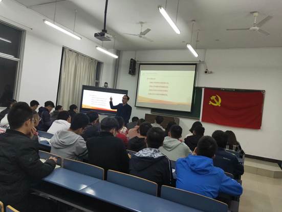 在聂军对本次培训纲要表述后,培训正式开始。首先,他借鉴习近平总书记的党的十九大报告提出,青年是祖国未来希望,也是党的未来希望。他表示,全体中共党员是青年朋友的知心人,青年工作热心人,青年群众引路人,应充分发挥先锋模范作用。随后,他以习近平在北大的讲话为引并指出,青年价值观决定未来社会方向,而青年又是价值观形成重要时期,抓好价值观的培养十分重要。紧接着,聂军对何为价值观作出了详细的解释,并通过分析上世纪染头发,以及当代穿衣风格等问题结合自身的看法,客观的诠释了价值观的定义,并引用“扣扣子理论”,再次强调了价值观重要性。接着,他提出了对青年的“八字要求”,通过多个事例并结合自身理解阐述了何为“勤学、修德、明辨、笃实”,以“爱国、励志、求真、力行”来要求各位同学,提出了四个正确认识。他表示,青年是我们的明天,青年是国家的未来,青年要奋斗,只有奋斗才能治愈过去的创伤,只有奋斗才能成就我们民族光明的未来。最后,他就树立远大理想,坚持锻炼等方面对同学们提出希冀,并对同学们给予了肯定和美好的祝愿。本次培训在同学们热烈的掌声中圆满完成。