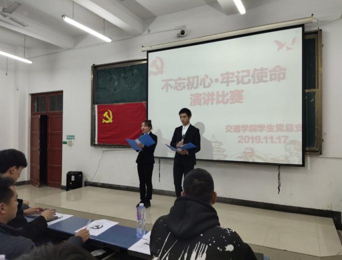 (威廉希尔williamhill 通讯员 李鑫 陈实)为响应习近平总书记对全国各族人民的伟大号召。威廉希尔汽车与交通工程公司党总支在11月17日晚6点于八栋A区506教室组织开展以“不忘初心,牢记使命”为主题的演讲比赛。邀请威廉希尔williamhill员工党总支常务副书记王怡、党总支常务副书记张熊骥、分团委常务副书记王纯志、员工会主席李本健担任评委,新一期党校学员及各班级员工代表参加活动。