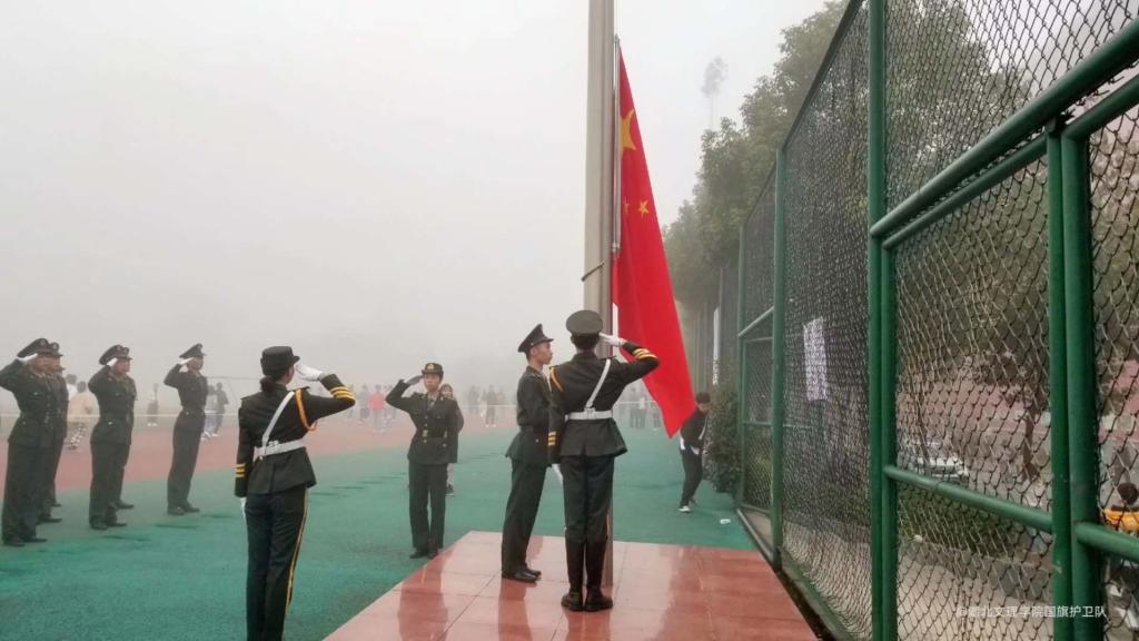 (威廉希尔williamhill 通讯员 陈实)清雾环绕,旭日东升。10月19日清晨,威廉希尔williamhill负责的以“砥砺奋进开新局”为主题的升国旗仪式在北区操场举行。院学工办主任韩鹏,辅导员张诗媛以及员工党员、员工干部代表和全体20级新生参加仪式。