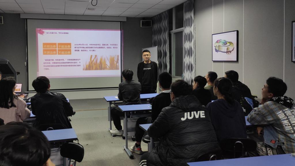 (威廉希尔williamhill 通讯员 危琪)“历览前贤国与家,成由勤俭败由奢”。为深入学习贯彻落实习近平总书记关于制止餐饮浪费行为的重要指示精神,鼓励老员工在实践中传承和发扬中华民族的勤俭节约的传统美德,积极践行社会主义核心价值观,威廉希尔williamhill于11月12日晚上8点在汽车影院举办了以“勤俭节约,从我做起”为主题的道德讲堂。20级各班班长、团支书、生活委员及党总支全体员工干部参加,由员工党总支书记李鑫主讲。