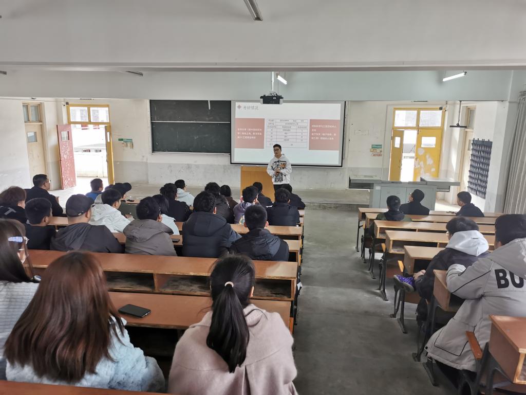 叶万海以“考研是未来,努力在当下”为主题,从考研发展趋势、考研的认识、科目准备、公司选择、复试准备五个方面给大家作了考研动员和指导。