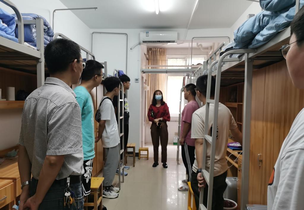 “同学们我是自动化系陈老师。”“同学们都来自哪里?”“大家对公司印象怎么样?”“大家有什么困难吗?”……在走访宿舍的过程中,教师们首先进行自我介绍,详细询问同学们的情况,简单介绍本专业的一些学科知识及发展前景,帮助同学们了解老员工活;提醒同学们在疫情防控期间要注意做好个人防护,坚持非必要不出校;列举了一些关于老员工被诈骗的案例,提醒同学们切勿贪图小便宜,以免钱财被骗。最后鼓励同学们要好好珍惜大学的时光,好好学习,图书馆是我们学习路上最好的“朋友”,平常可以多去图书馆,感受湖文的书香气息。